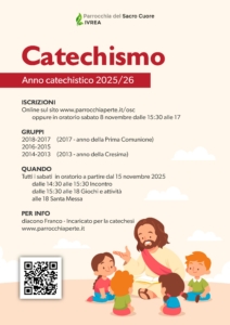 C’è una proposta molto interessante per te! Hai voglia di passare il sabato pomeriggio in compagnia di tanti amici? Ti interessa divertirti con attività e anche giochi e magari diventare un animatore dei più piccoli? Desideri scoprire qualcosa di utile per te e per gli altri? Le attività dell’Oratorio del Sacro Cuore di Ivrea fanno proprio al caso tuo!